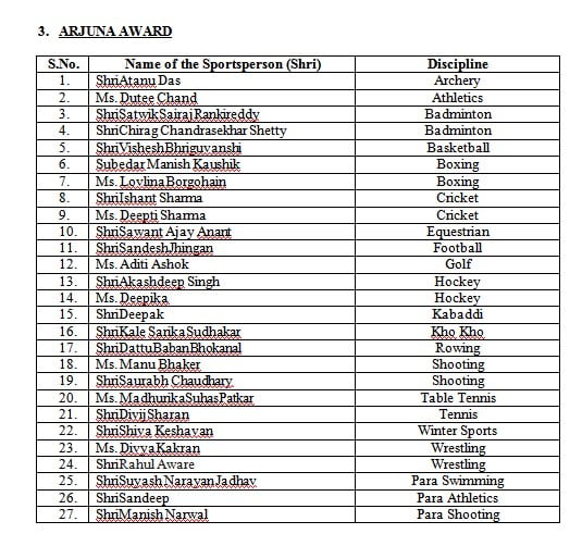 The Sports Ministry gave its go-ahead to 27 of the 29 names recommended by the selection committee on Tuesday.
