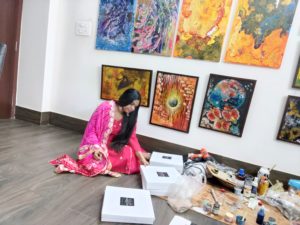 As a matter of fact, I have tried my hands in almost everything. I make a point to learn any new art form I come across. Leaning any new form of art is quite easy these days as all the courses are available online. I believe it’s about one’s interest and inquisitiveness. Currently, I am doing Tanjore, Resin art, Fluid Art, Russian sculpture paintings, though I am focussed on mixed media and exploring abstract art.