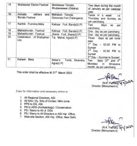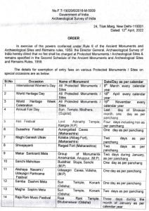 The details for exemption of entry fees at various protected monuments and sites on special occasions are as below: