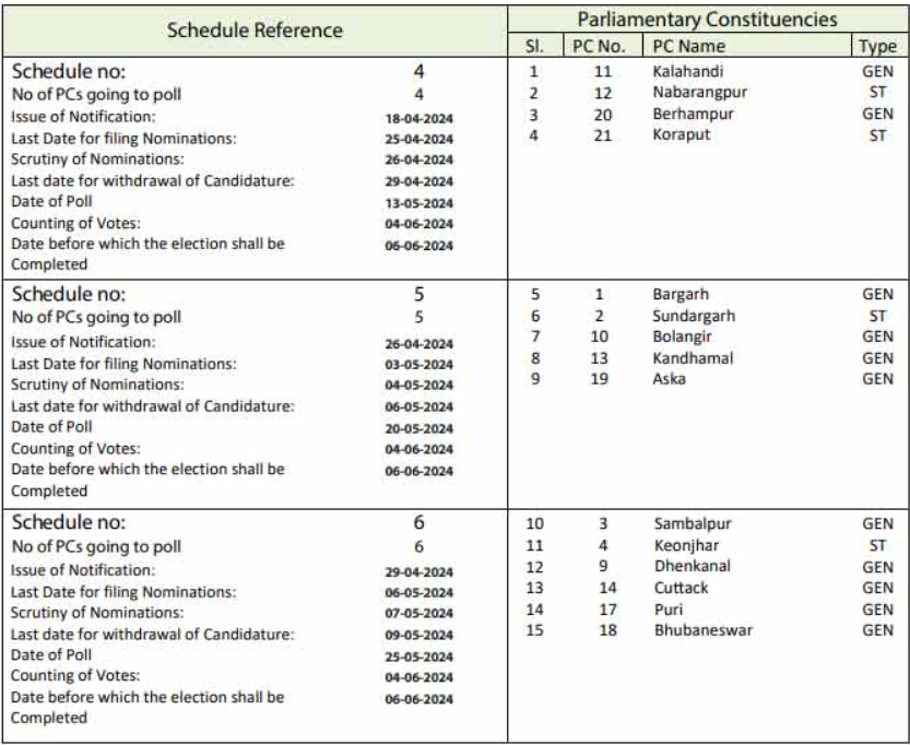 As per the announcement, voters will cast their votes on four dates, May 13, 20, 25, and June 1 for 21 Lok Sabha and 147 Assembly seats in the state. The counting of the votes will take place on June 4, Chief Election Commissioner (CEC) Rajiv Kumar.