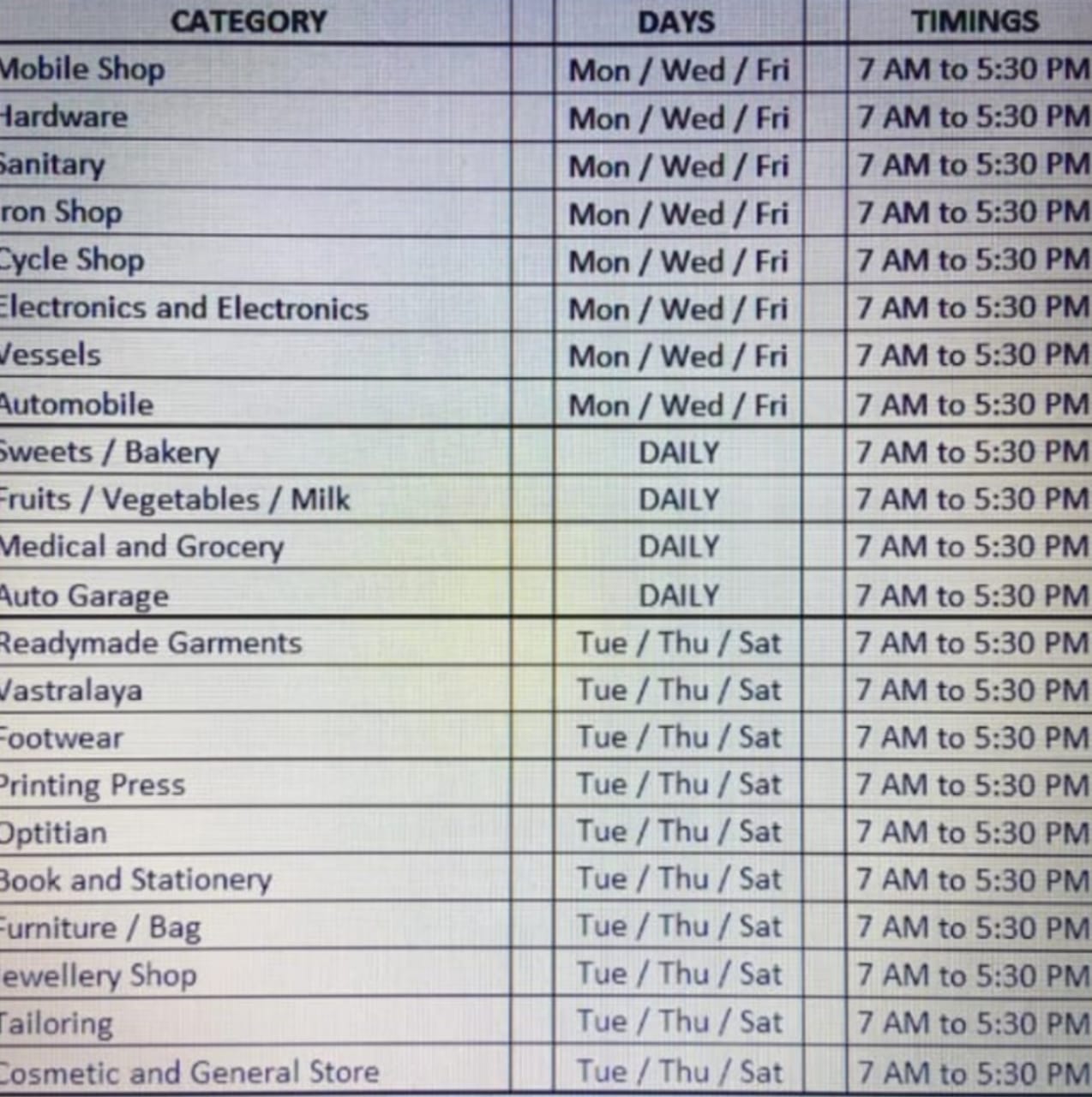 Here’s the new shop opening arrangement for Bapuji Nagar: