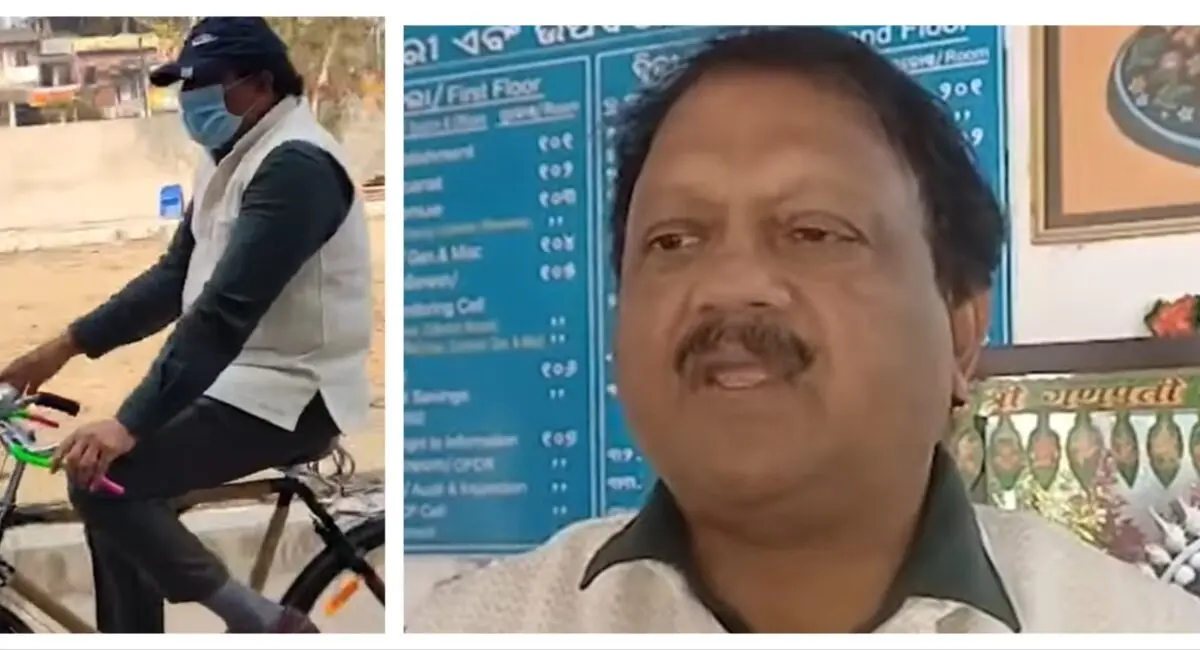 Bhadrak: Leaving his official vehicle aside, District Collector of Bhadrak Dilip Routrai chose to ride a bicycle from his residence to office on Wednesday, drawing attention from locals.