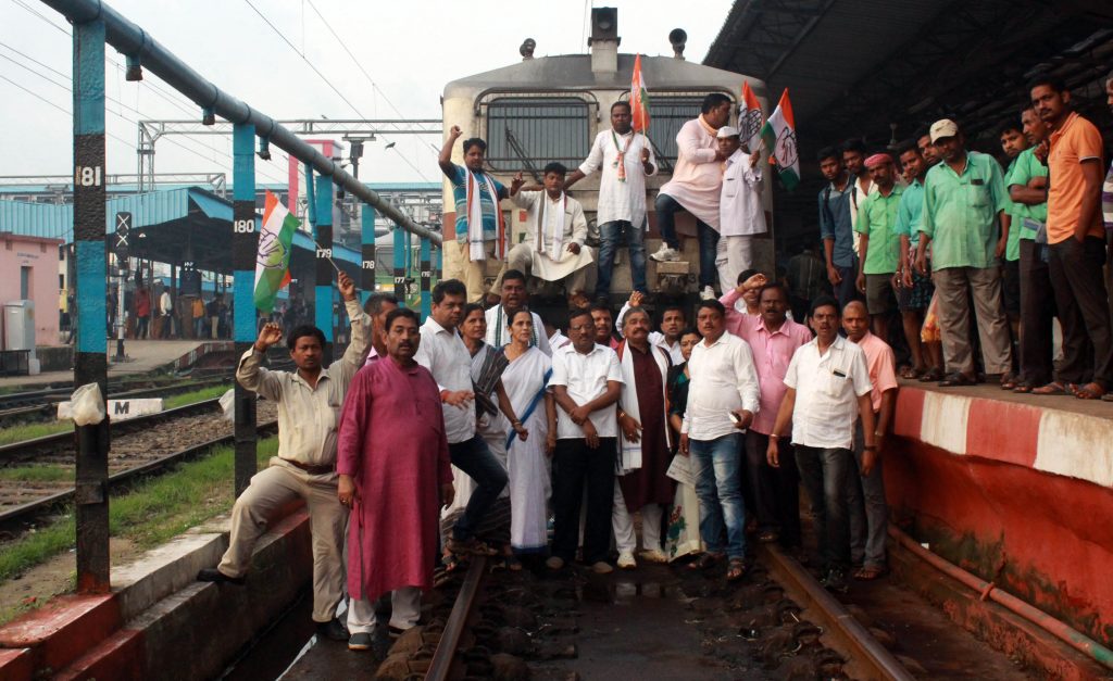 In Bhadrak, the Congress activists staged rail rook and detained the DMU. Besides, they also detained the Secunderabad-Guwahati Superfast Express at Manjuri Road. In Jajpur district, the Kharagpur-Bagha Passenger train was detained at Jajpur Road while in Balasore district, the Howrah-Khurda Passenger train was detained at Jaleswar railway station.