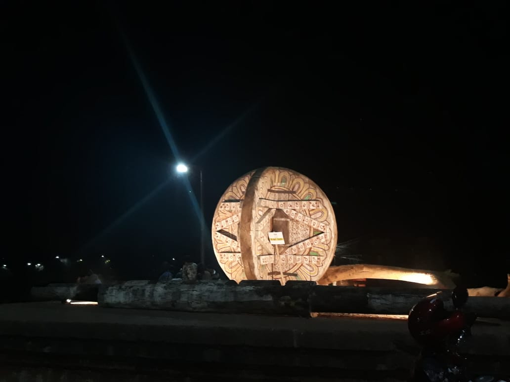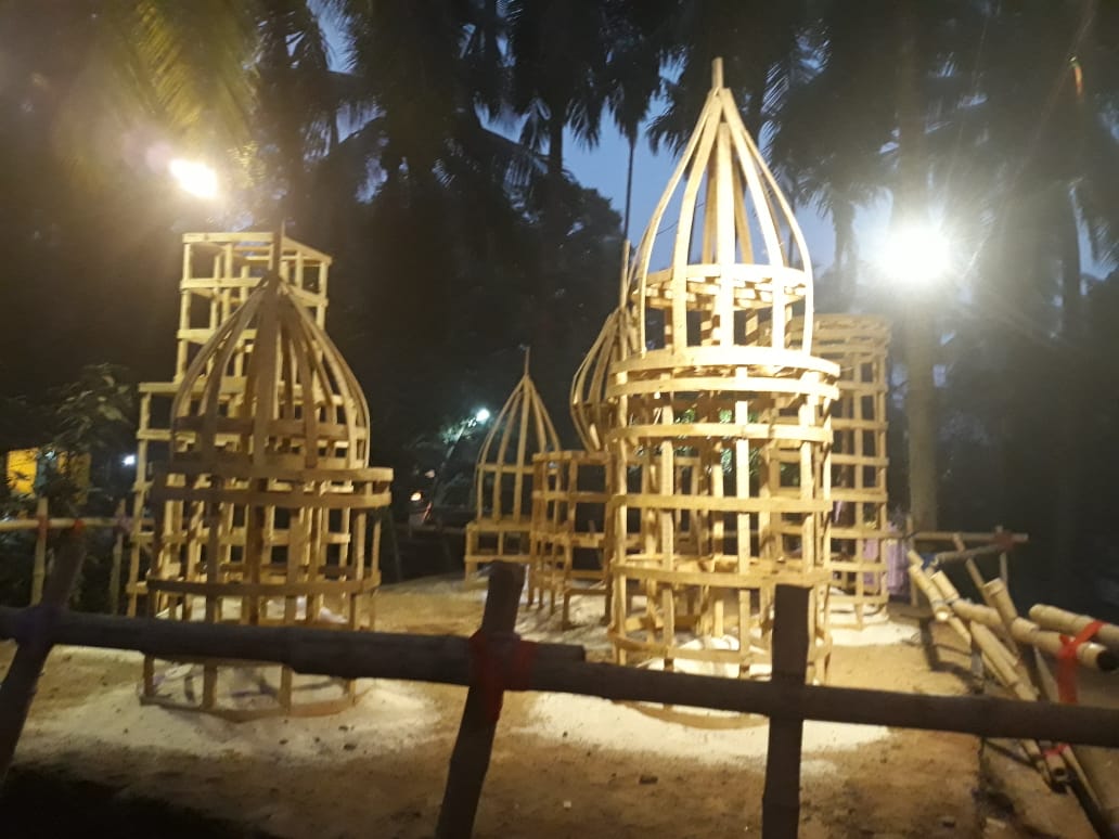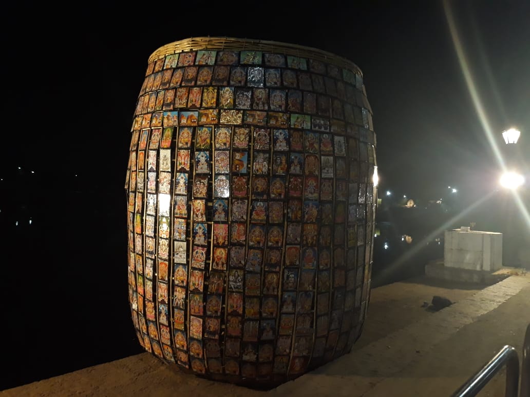 Getting back to BAT, the first installation was within the Kedargouri Temple complex. Made out of bamboo, the life size installation inside Guajhara looked ethereal with all the beautiful lighting. Sayantan Maitra, the creator, is an architect and that explained his thought behind this installation titled “Duck above, fish below”, explaining Archimedes’ principle but with a twist. It depicts the formation of a settlement, city, society due to several forces/pressures surrounding it that can be societal, environmental or economic.