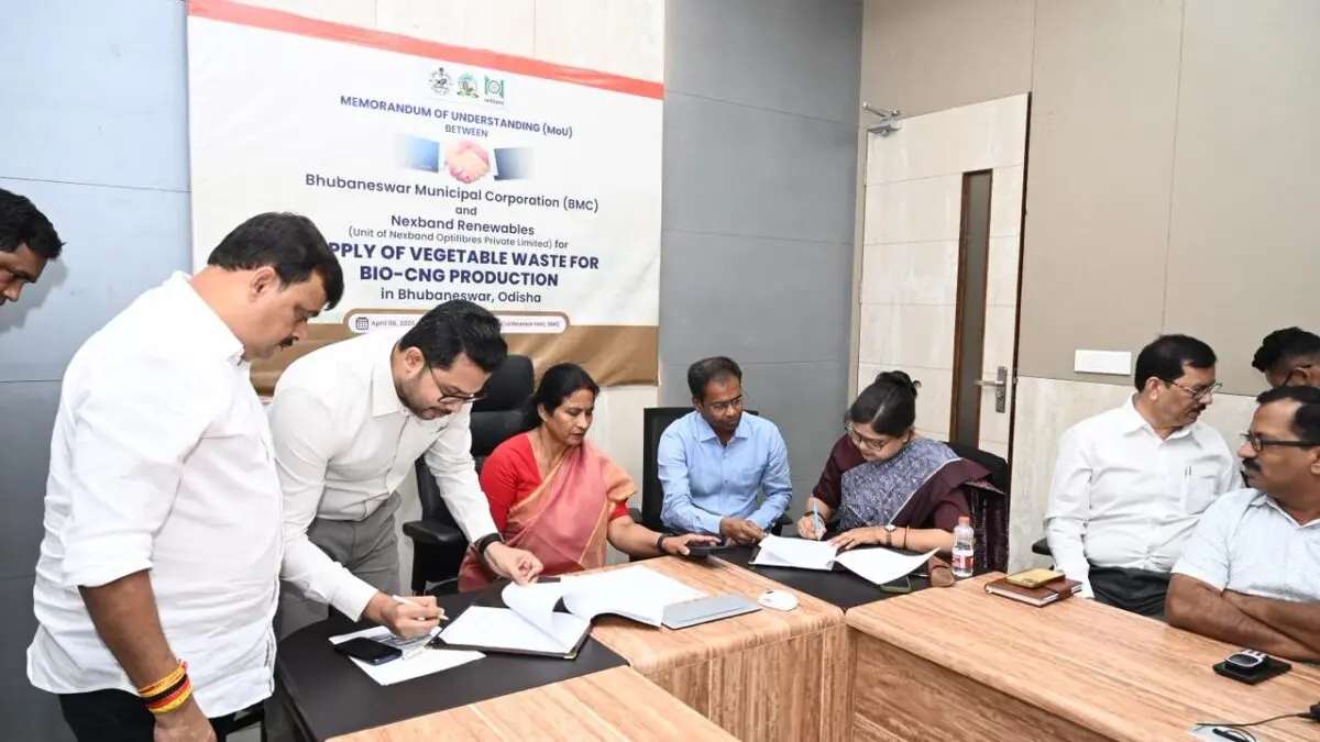 Bhubaneswar: In a significant step towards waste-to-energy initiatives and sustainable urban management, the Bhubaneswar Municipal Corporation (BMC) has signed a Memorandum of Understanding (MoU) with Nexband Renewables to process vegetable and organic waste into Compressed Biogas (CBG or CNG).
