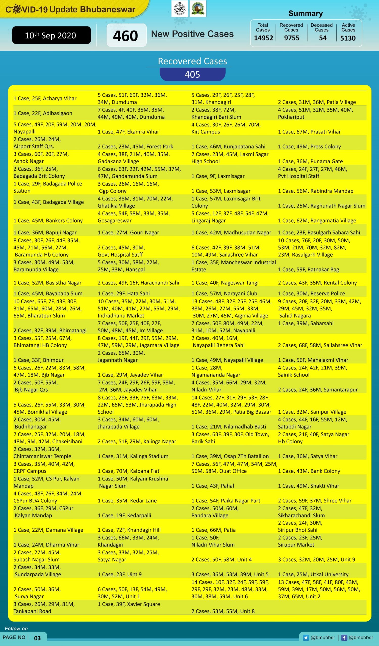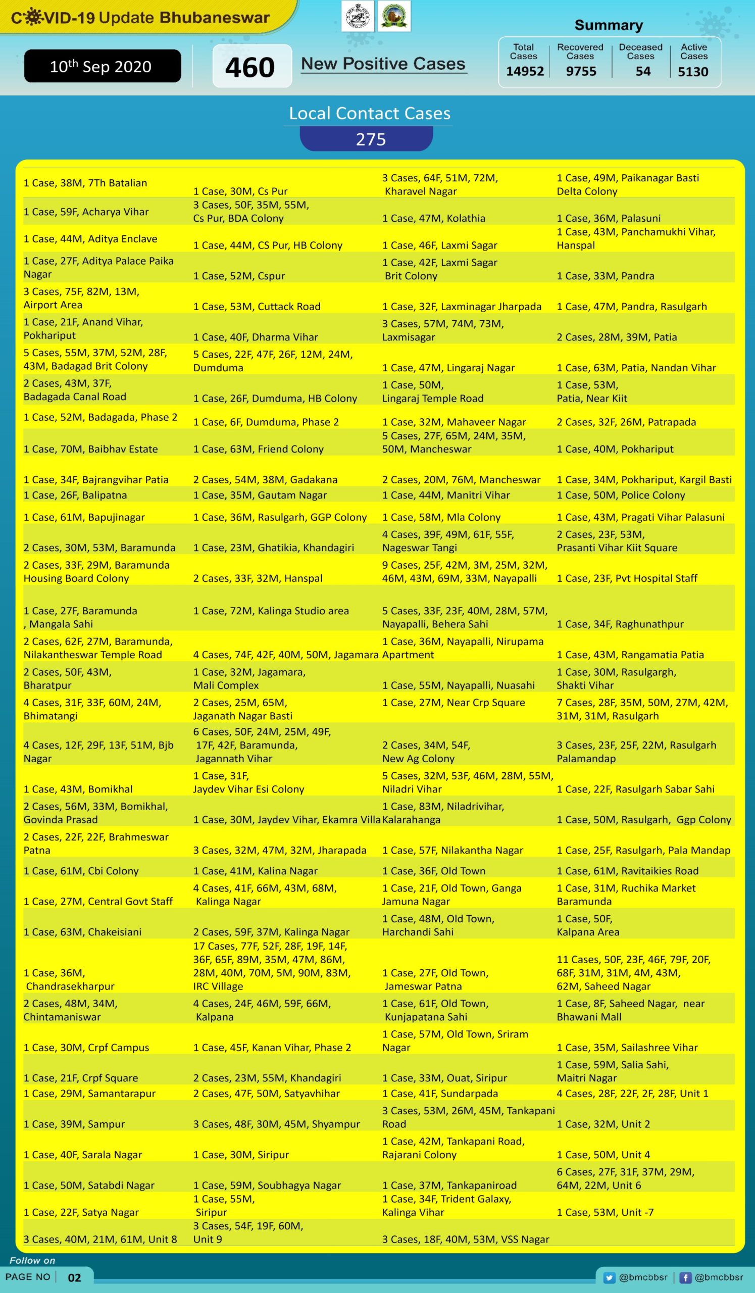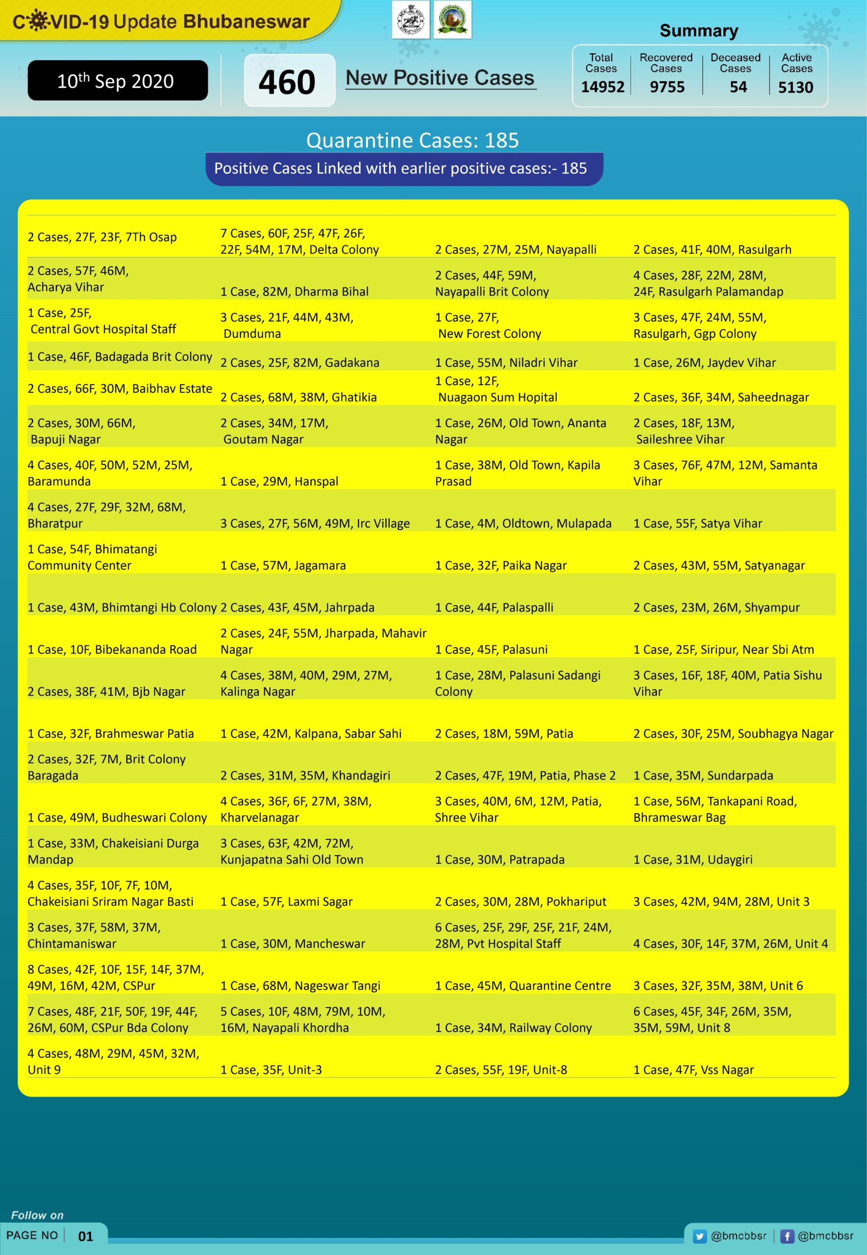 With 54 deaths and 9755 recoveries, Bhubaneswar now has 5130 active cases.