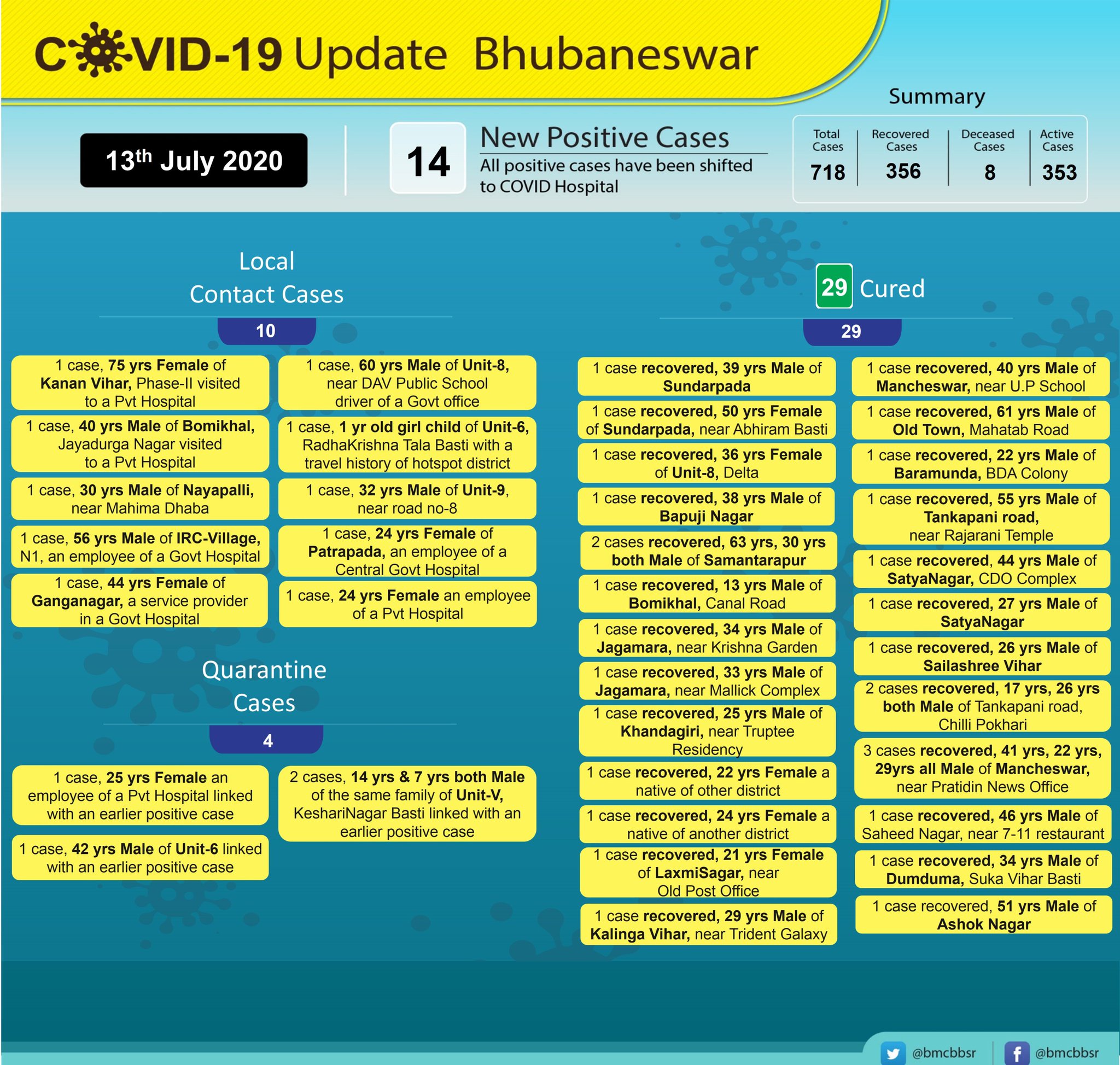 With 8 deaths and 356 recoveries, Bhubaneswar now has 353 active cases.