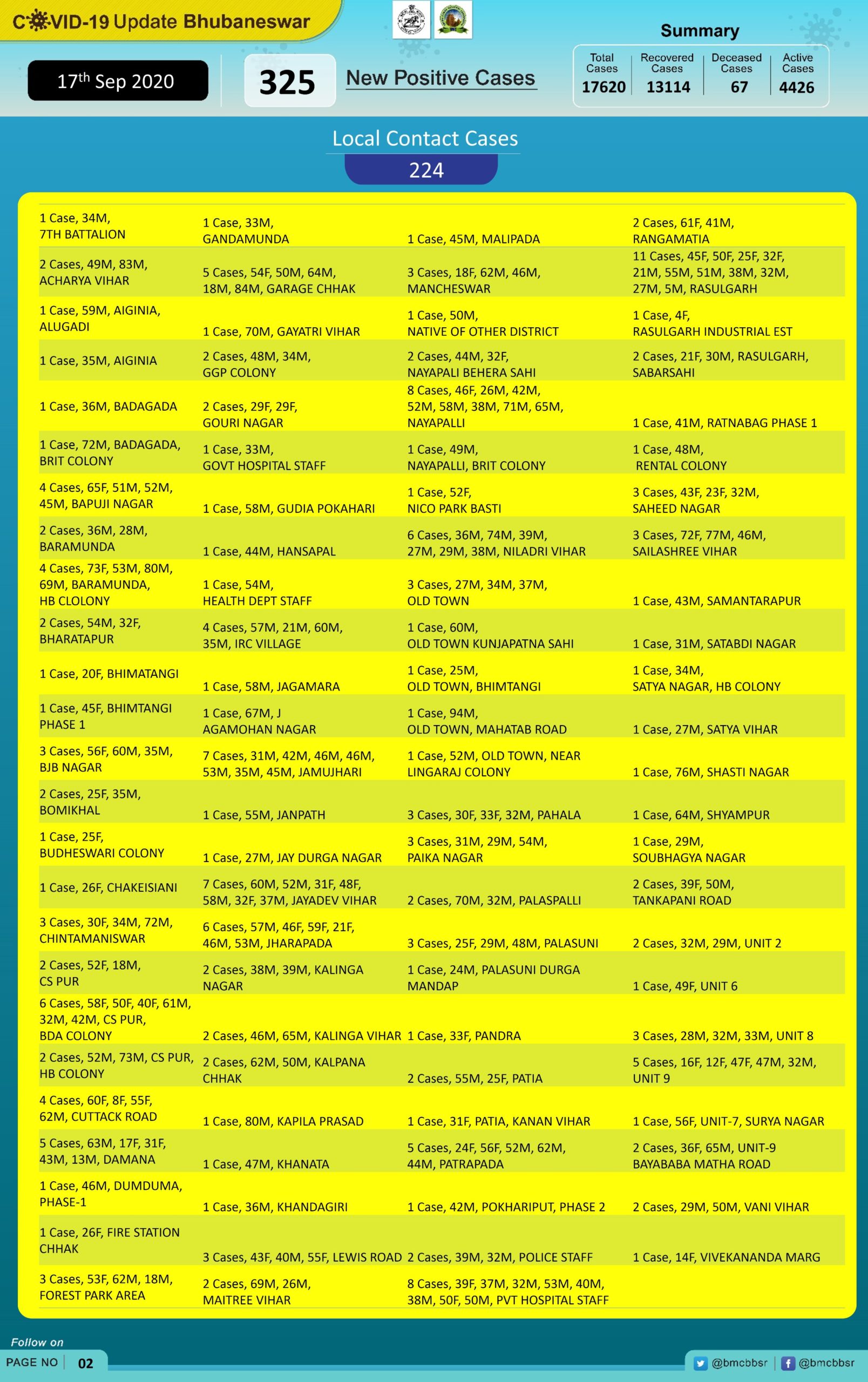 According to Bhubaneswar Municipal Corporation (BMC), 224 are local contact cases while the rest 101 are those who contracted the virus from previous patients.