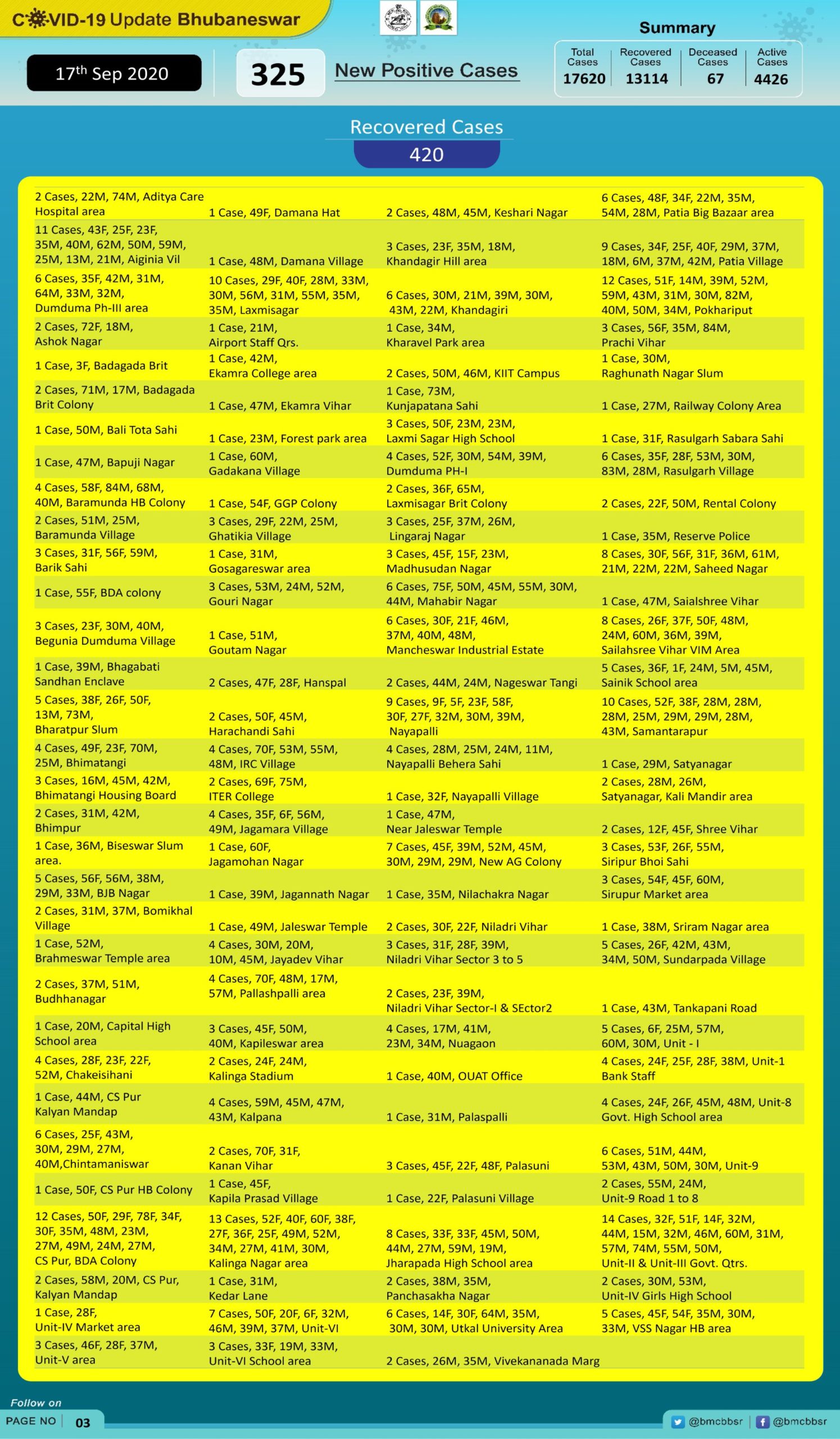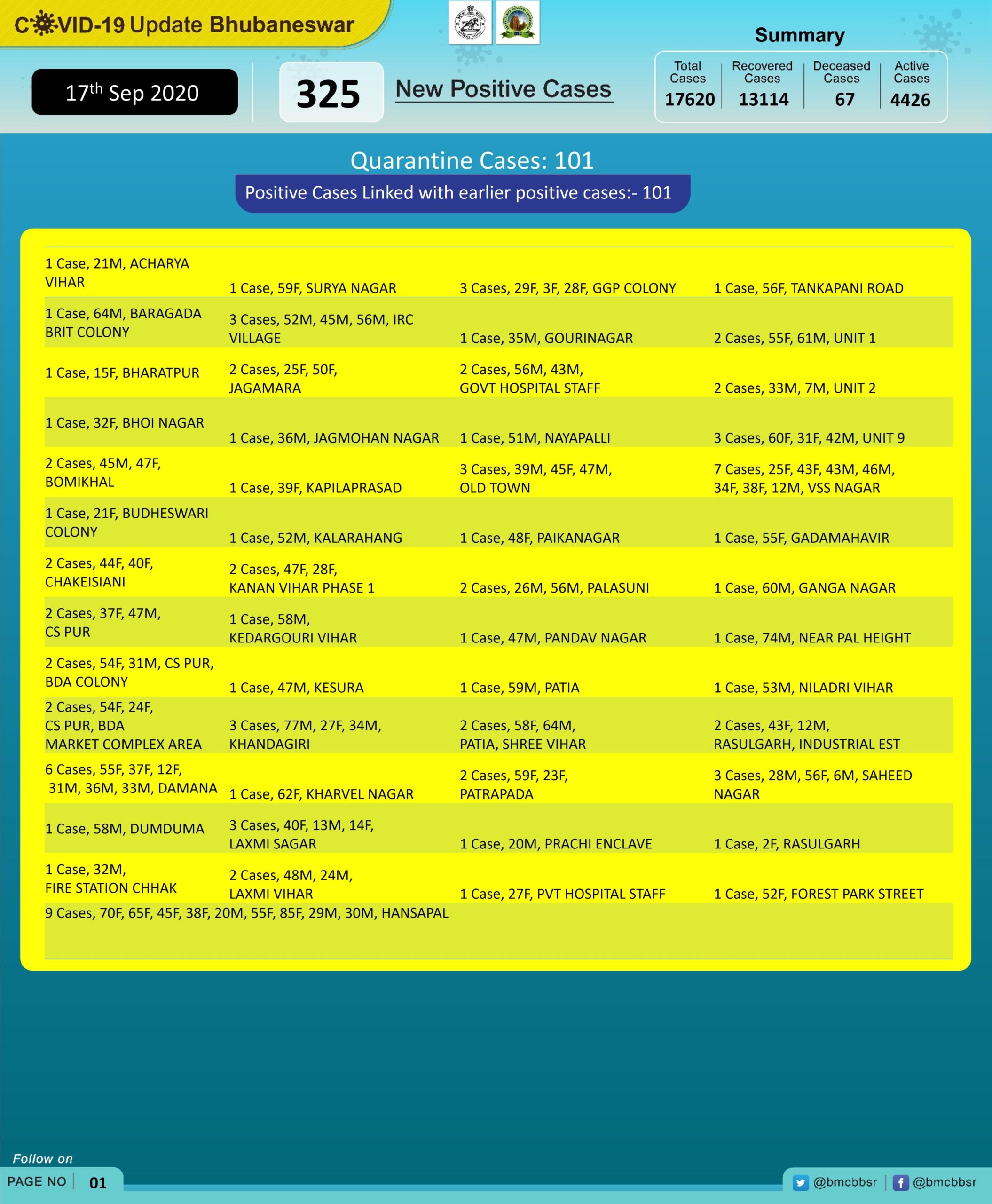With 67 deaths and 13114 recoveries, Bhubaneswar now has 4426 positive cases.