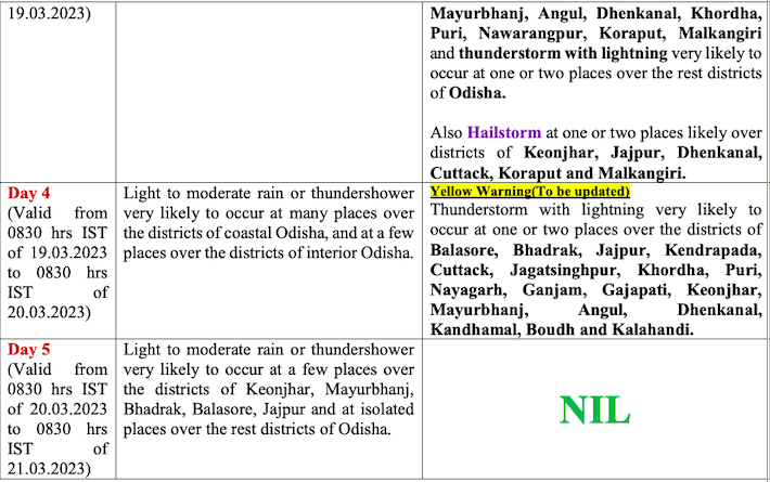 Former director of the regional IMD centre Sarat Chandra Sahu said thunderstorm is likely to continue till March 21, leading to a drop in day temperature. Both coastal and north Odisha pockets would witness thundersquall along with hailstorm for three days from March 16, he added.