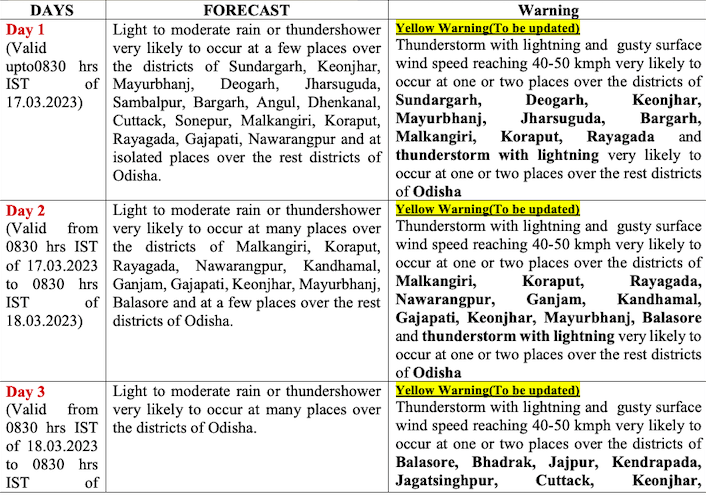 Former director of the regional IMD centre Sarat Chandra Sahu said thunderstorm is likely to continue till March 21, leading to a drop in day temperature. Both coastal and north Odisha pockets would witness thundersquall along with hailstorm for three days from March 16, he added.