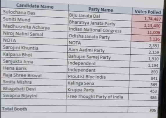 While Sulochana polled 1,74,487 votes, Suniti got 1,13,400 and Congrees’ Madhusmita Acharya was a distant third with 11,006 votes. A total of 2,351 voters chose the NOTA option, official sources said.