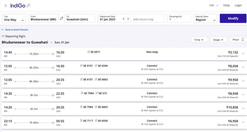 Bhubaneswar: IndiGo’s direct flight service between Bhubaneswar and Guwahati will resume from New Year 2023, according to the official website of the airline.