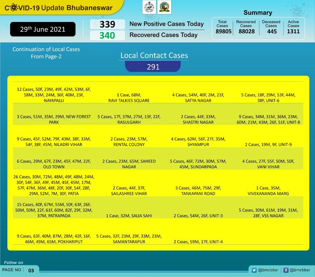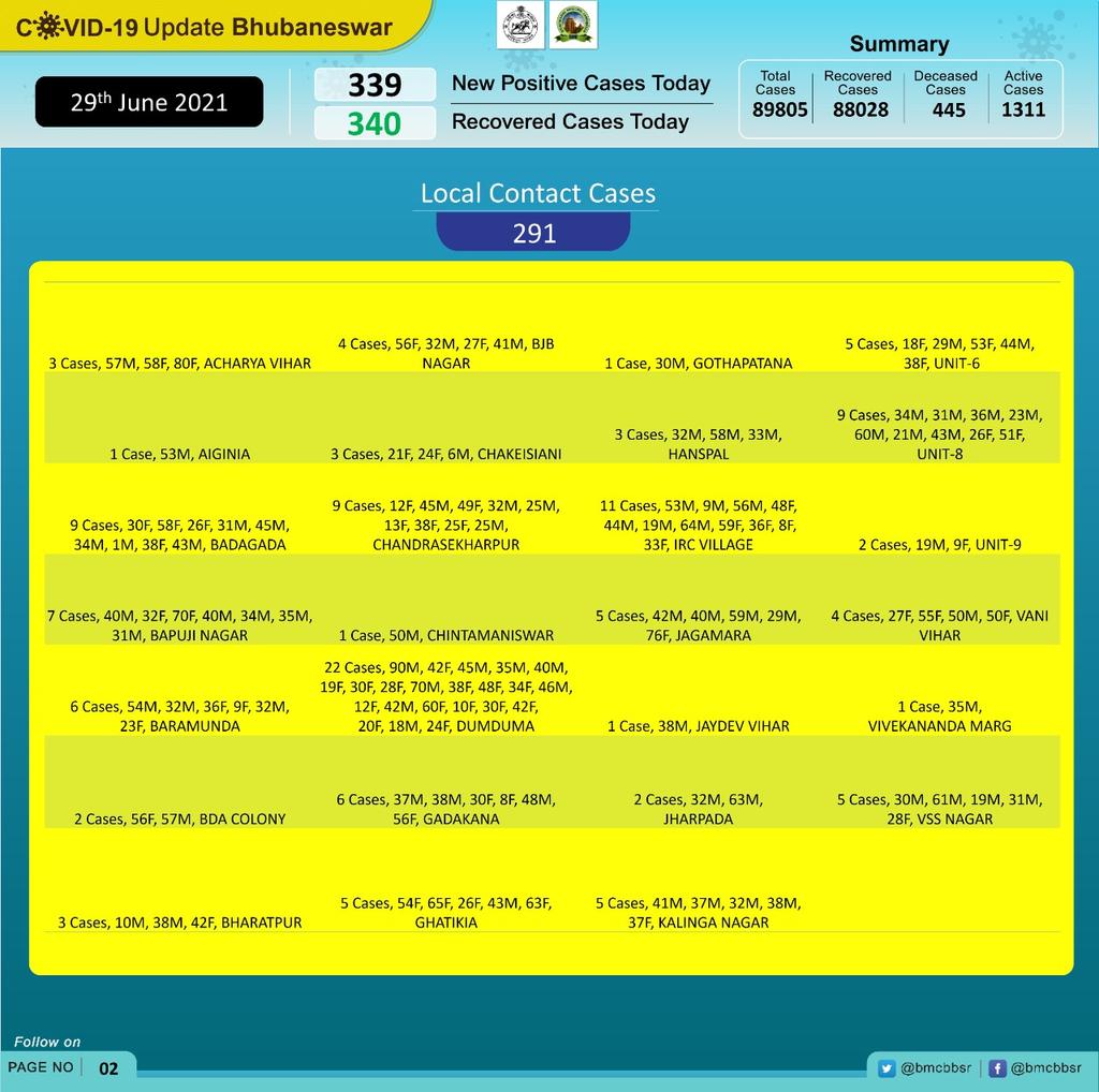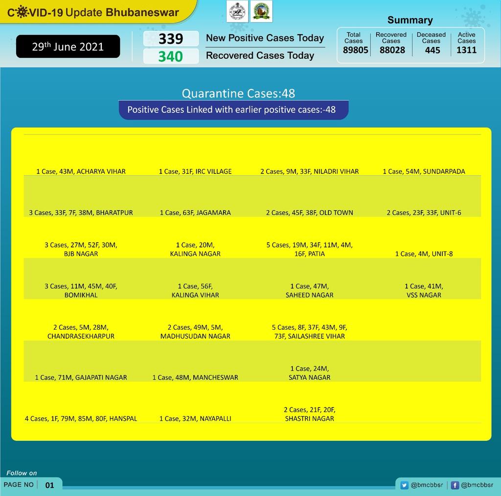 Of the new cases, 48 are from quarantine and 291 local contacts, Bhubaneswar Municipal Corporation stated in its tweet.