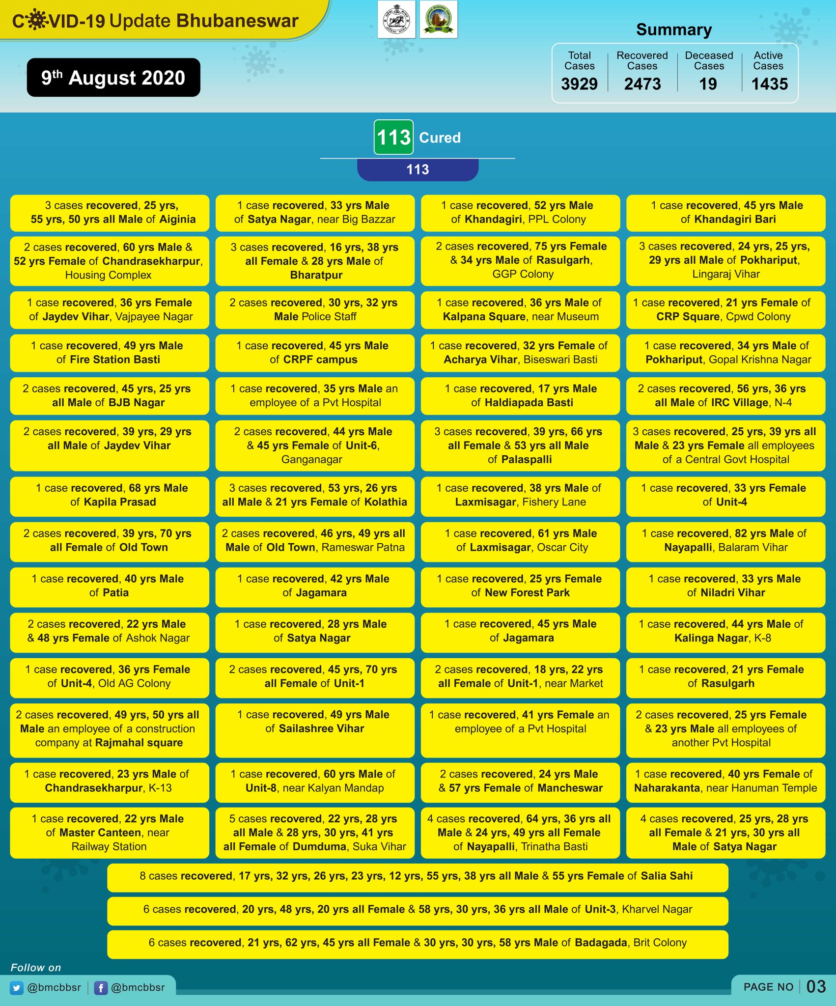 With 19 deaths and 2473 recoveries, Bhubaneswar now has 1435 active cases.