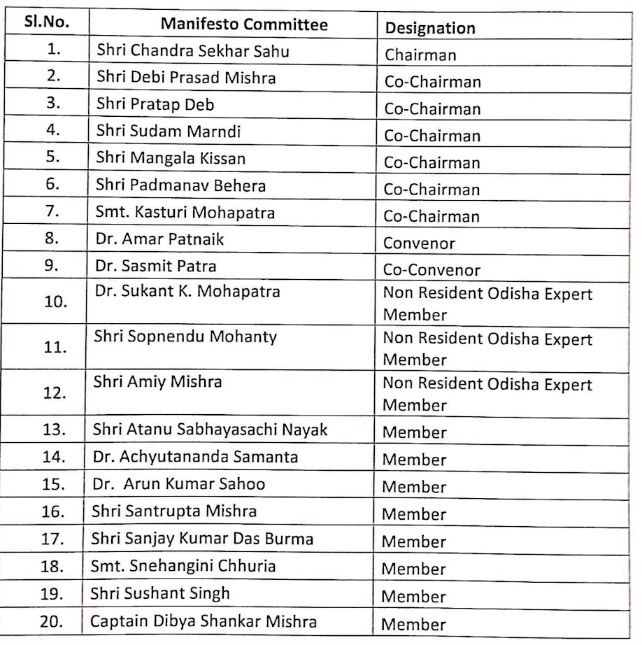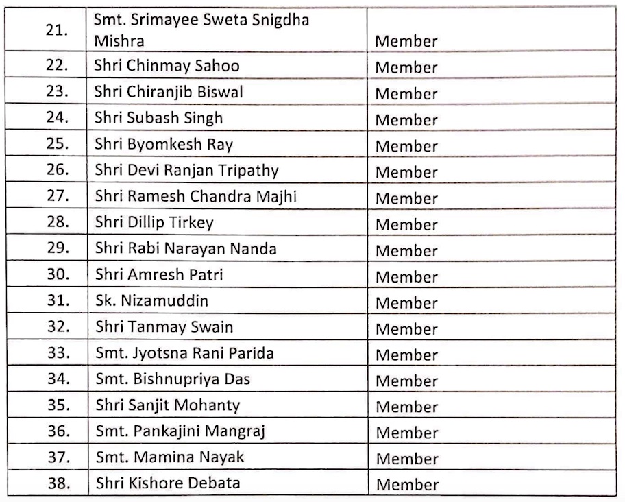 Legislators Debi Mishra, Pratap Deb, and Sudam Marndi, and Padmanav Behera, former Rajya Sabha member Magala Kissan, and Kasturi Mohapatra,  Editor of Utkal Prasanga and Odisha Review, are co-chairpersons of the panel. “The committee will hold discussions with different sections of the society, people from all walks of life and different age groups and prepare a manifesto for transformation towards ‘New Odisha-Empowered Odisha’,” the office order said.