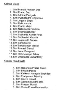 The lineup features heavyweights like Niranjan Pujari, Arun Sahoo, Pratap Jena, Captain Dibyashankar Mishra, Atanu Sabyasachi Nayak, Pranab Prakash Das, and Pratap Deb, each assigned specific responsibilities for two blocks (Nuapada, Komna) and two NACs (Nuapada NAC, Khariar Road NAC) under the Assembly constituency, signaling an all-out campaign effort.