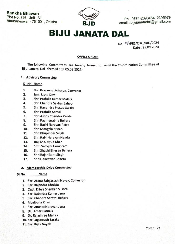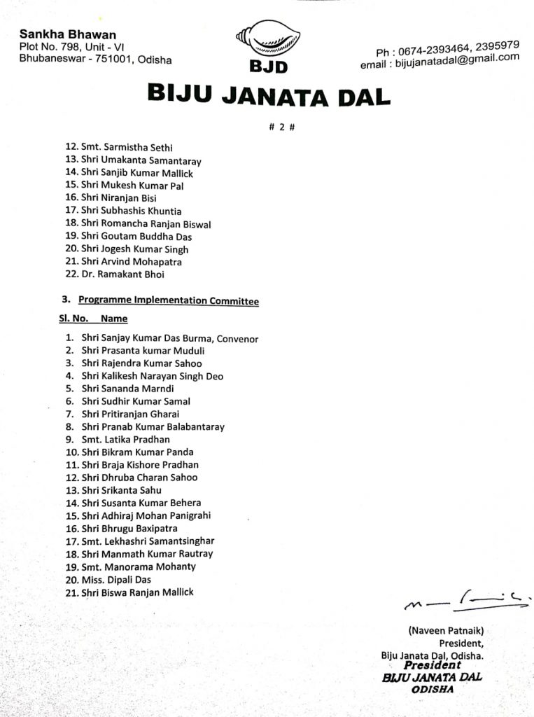 As per an office order issued by BJD president Naveen Patnaik, the new panels have been formed to assist the coordination committee of the party which was constituted on August 5.
