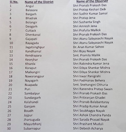 “In supersession of all the previous orders, the following BJD leaders have been appointed as district observers,” an office order said. Check the list here: