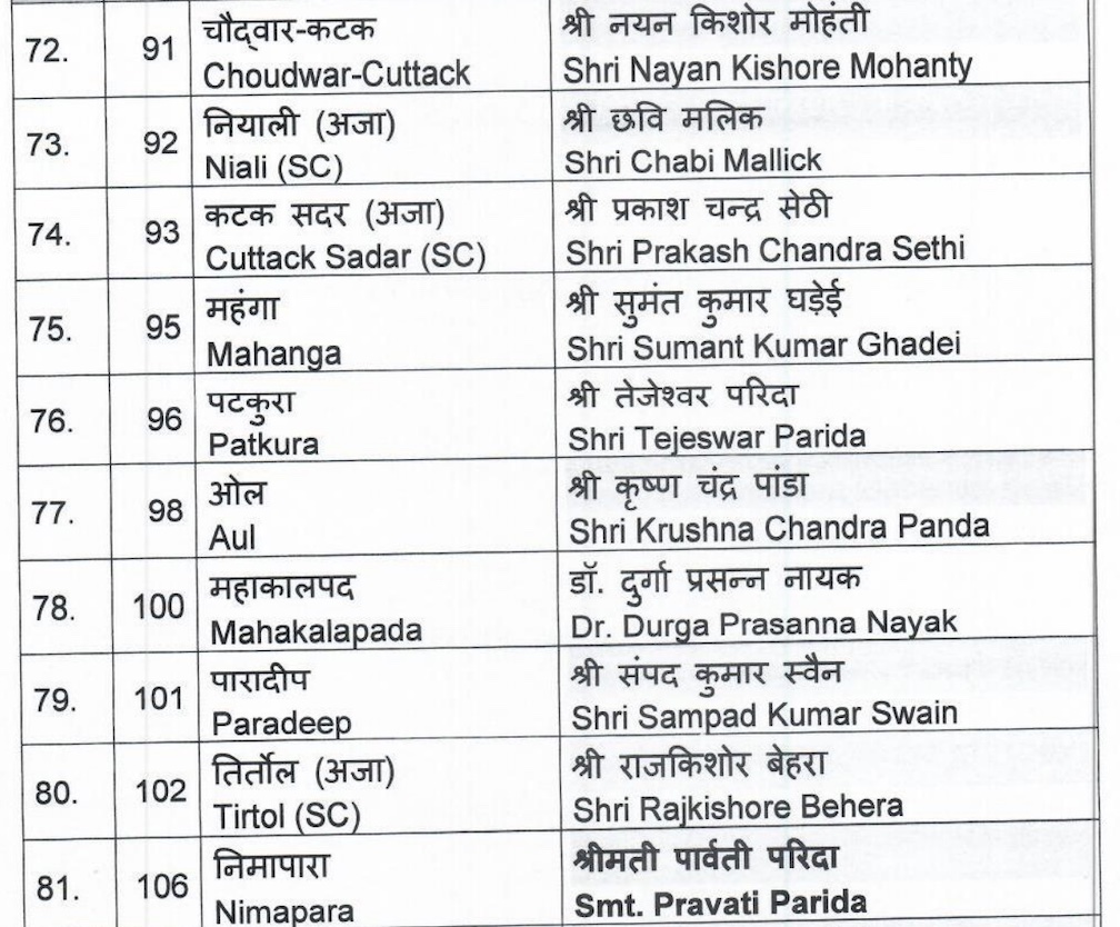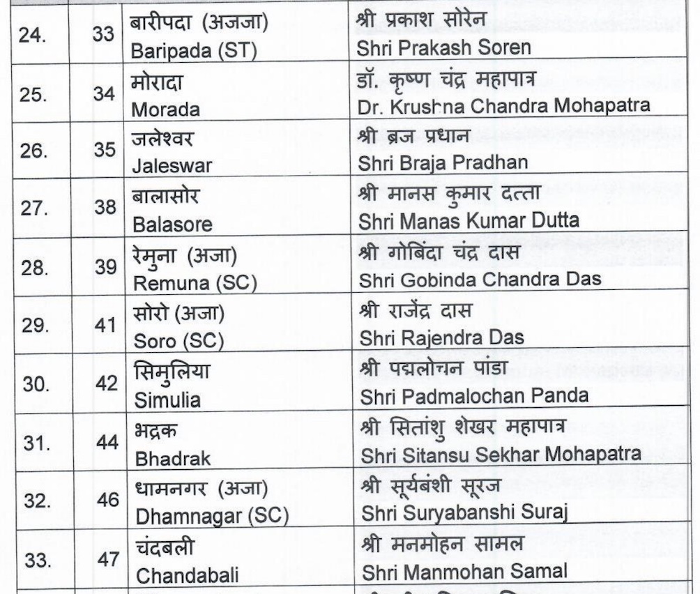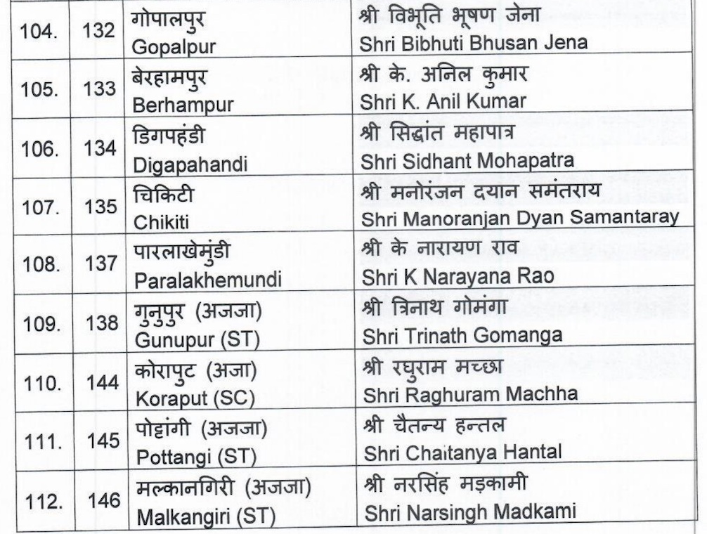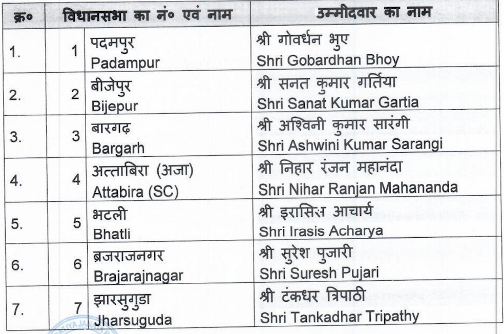 Bhubaneswar: The Bharatiya Janata Party (BJP) on Tuesday announced candidates for 112 of the 147 Assembly seats in Odisha.