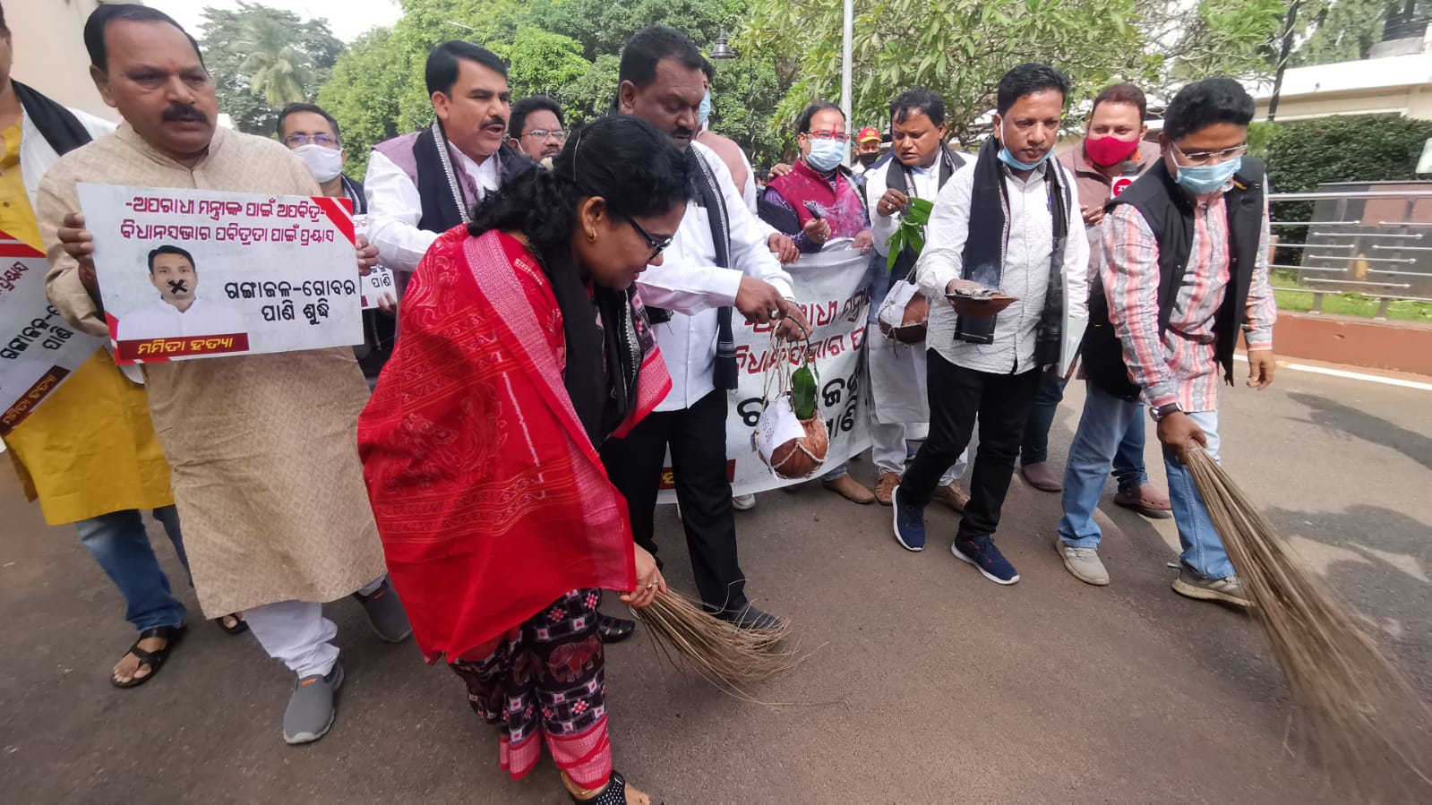 Some BJP legislators were seen sprinkling Gangajal and cow-dung water on the premises, claiming that the entry of the minister had desecrated the state Assembly.
