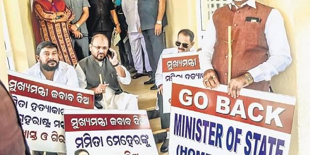 Shouting slogans and holding placards that read “Go back MoS (Home)” and “Give Justice to Mamita Meher”, the legislators demanded an answer from Chief Minister Naveen Patnaik on the issue.