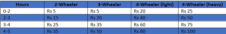 BMC has also mentioned the parking rate chart for all categories of vehicles based on the duration: