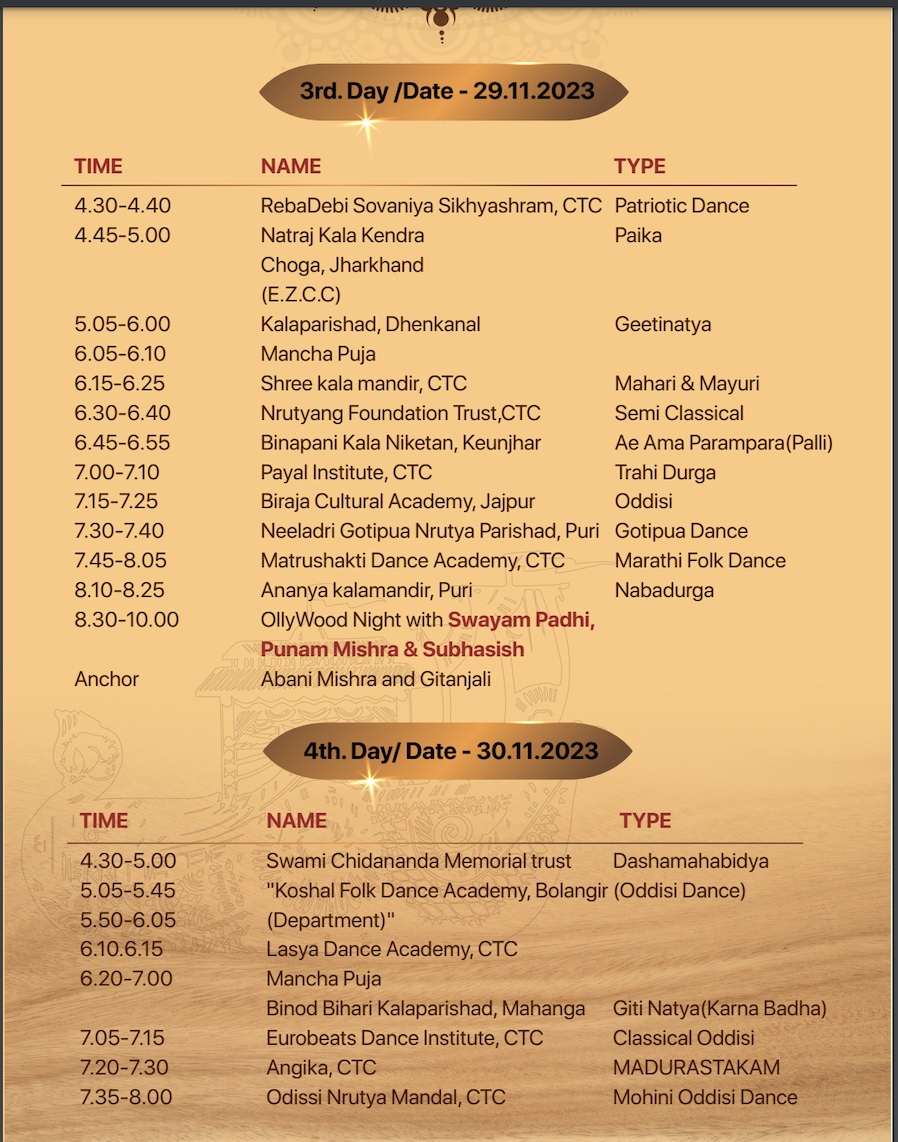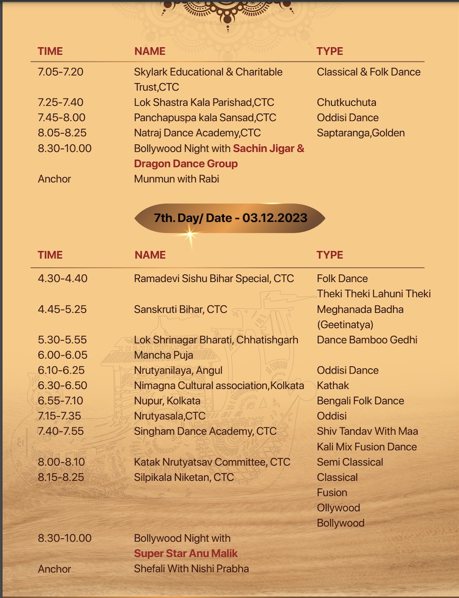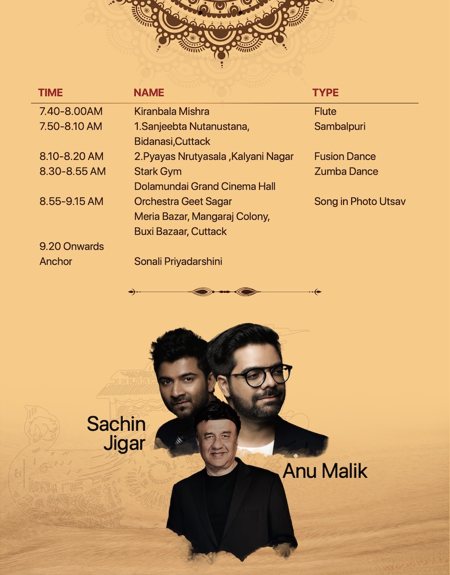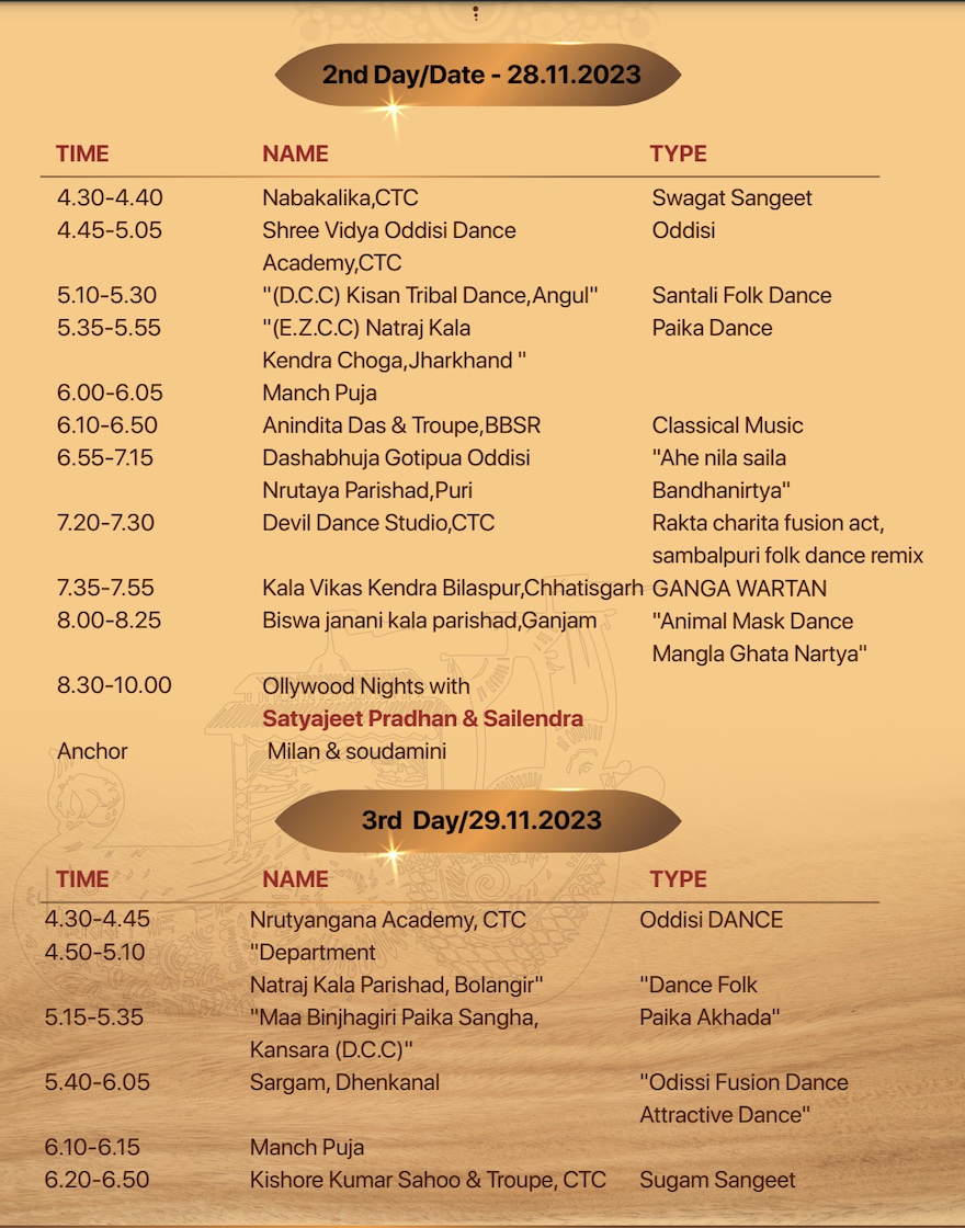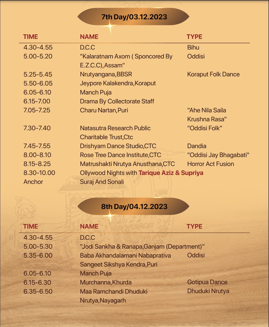 Ganakabi Baishnab Pani Mancha will also host Bollywood nights with Sachin-Jigar, and the Dragon Dance Group on December 2 and with noted music director Anu Malik on December 3. The 8-day event will also have performances by singers Abhijeet Majumdar and T Souri, comedian Papu Pom Pom, actresses Shibani Sangeeta and Supriya Nayak.