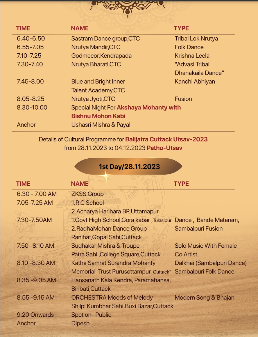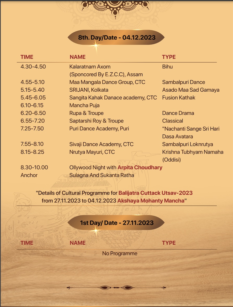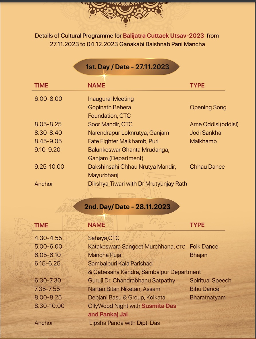 Bali Jatra Utsav, which is all set to start from November 27, will witness folk dances, traditional music performances, and other cultural events, adding a festive and entertaining element to the celebration, on Ganakabi Baishnab Pani Mancha, Akshaya Mohanty Mancha, and Patha-Utsav.