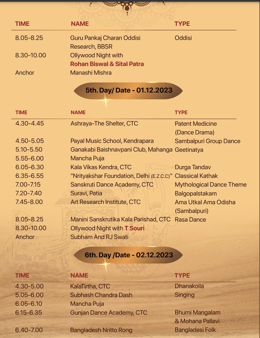 Ganakabi Baishnab Pani Mancha will also host Bollywood nights with Sachin-Jigar, and the Dragon Dance Group on December 2 and with noted music director Anu Malik on December 3. The 8-day event will also have performances by singers Abhijeet Majumdar and T Souri, comedian Papu Pom Pom, actresses Shibani Sangeeta and Supriya Nayak.