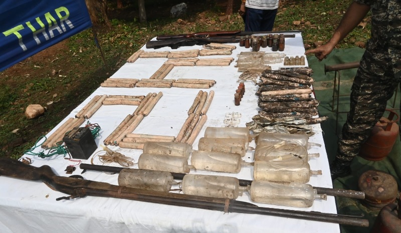 The seized materials included three SBML guns, four electric detonators, 98 Gelatin sticks, two directional mines, three empty LPG cylinders, 10 saline bottles and 12 medicine bottles.