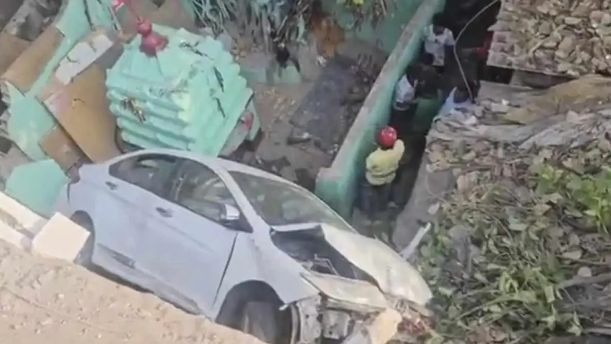 According to sources, the accident took place at around 5.30 am. The car rammed into the barricade of the bridge and struck a tree before crashing onto the roof of a house with an asbestos structure in the slum. Residents of the slum had a terrifying close call, as the plummeting car came dangerously close to several homes. Eyewitness accounts described a loud impact followed by panic among nearby residents. A youth reportedly sustained head injuries after bricks fell on him while he was asleep.
