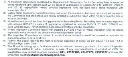 Since physical inspection is not possible in view of the COVID-19 pandemic restrictions, the central Board has decided to expedite the process. Otherwise schools which had already applied for upgradation were facing hardships.