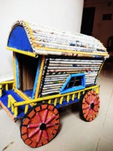 “I am making these crafts with paper only, using glue and water colour if necessary. I observed that people waste old newspapers, so I thought of reusing them in my work. I roll the papers neatly and stick them in various shapes with the help of glue,” said Ved Vikash.