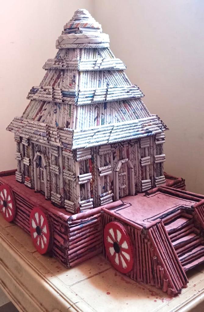 “I have made more than 30 crafts during lockdown period so far, including Lord Jagannath, Konark temple, Shri Khetra, Chariots of Lord Jagannath, Balabhadra and Devi Subhadra, Eiffel tower and many more,” he informed.