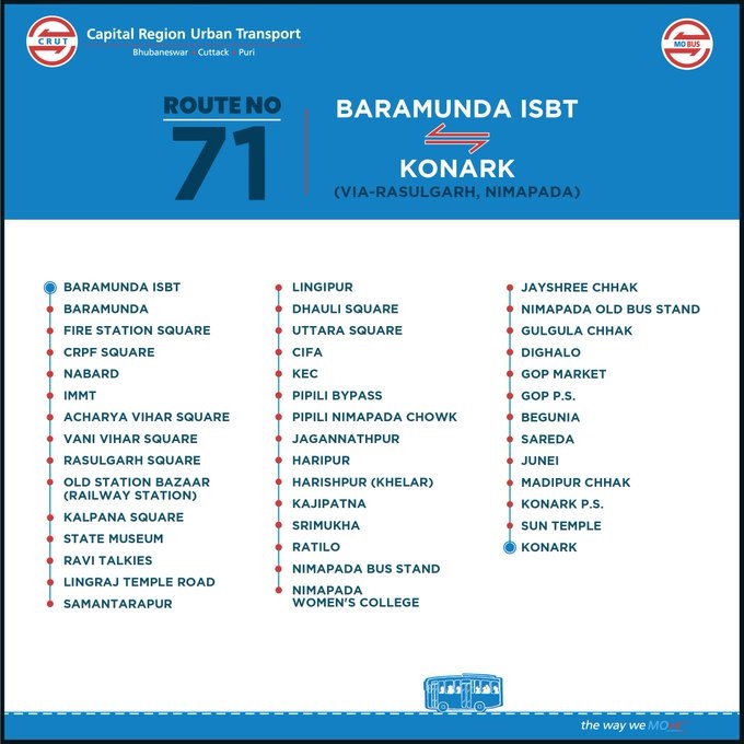 Meanwhile, plying of buses on route no. 71 (Baramunda-Konark) will resume on December 1, 2022, on the occasion of the Konark Festival which is scheduled to be held from December 1 to 5.