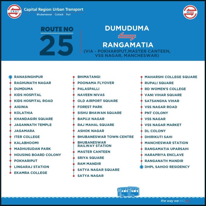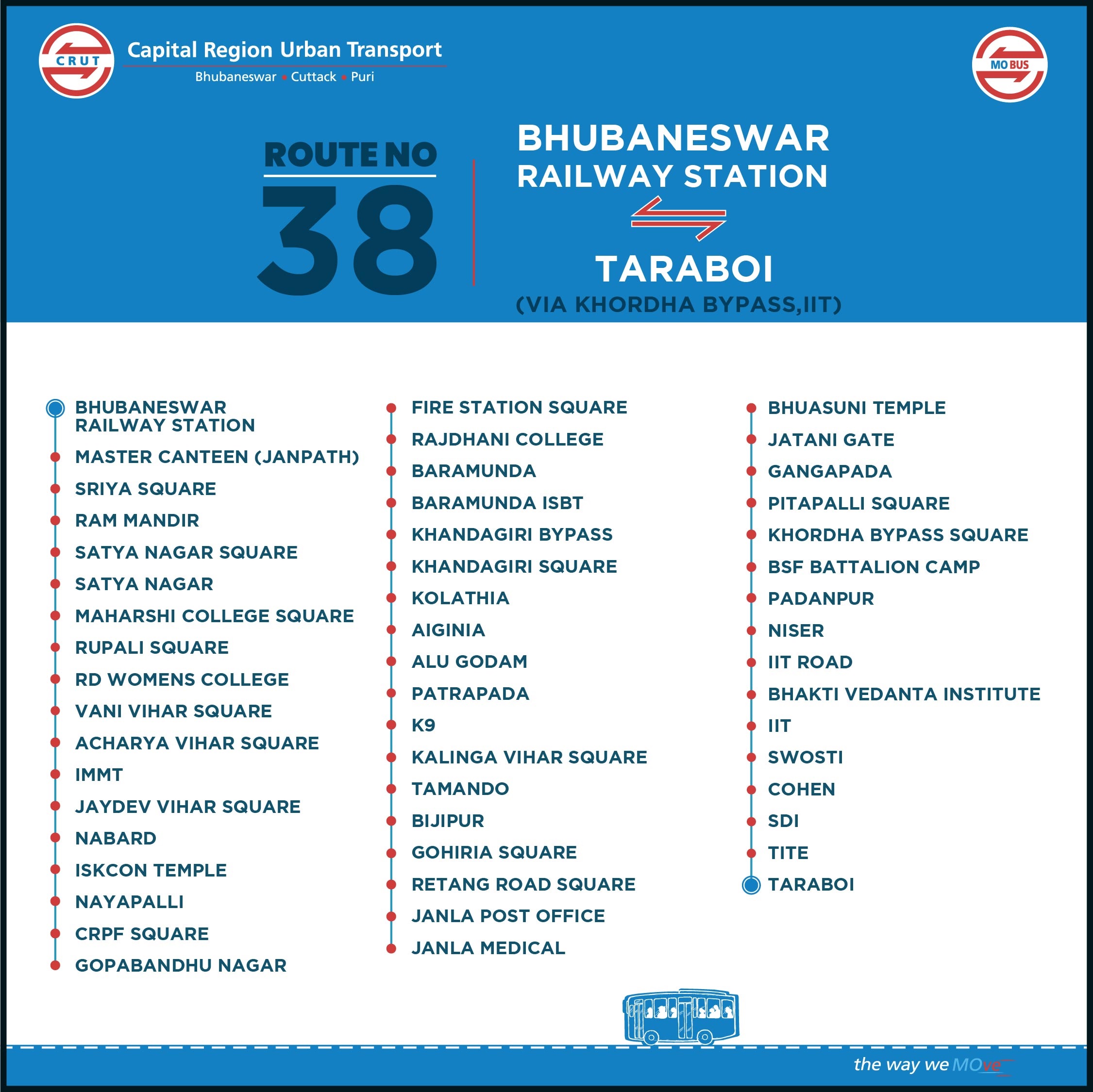 CRUT made the announcement through its official Twitter account mentioning about the routes which include Baramunda-Naraj Railway Station (via Nandankanan, OMFED Dairy) (Route-37), Bhubaneswar Railway Station-Taraboi (via Khordha Bypass, IIT) (Route-38), and Biju Patnaik Park, Cuttack-Puri Bus Stand (Route-54).