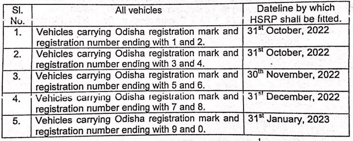 Bhubaneswar: The timeline for affixation of high-security registration plates (HSRP) has been extended by a month, the Odisha State Transport Authority (STA) said in an order issued on Friday.