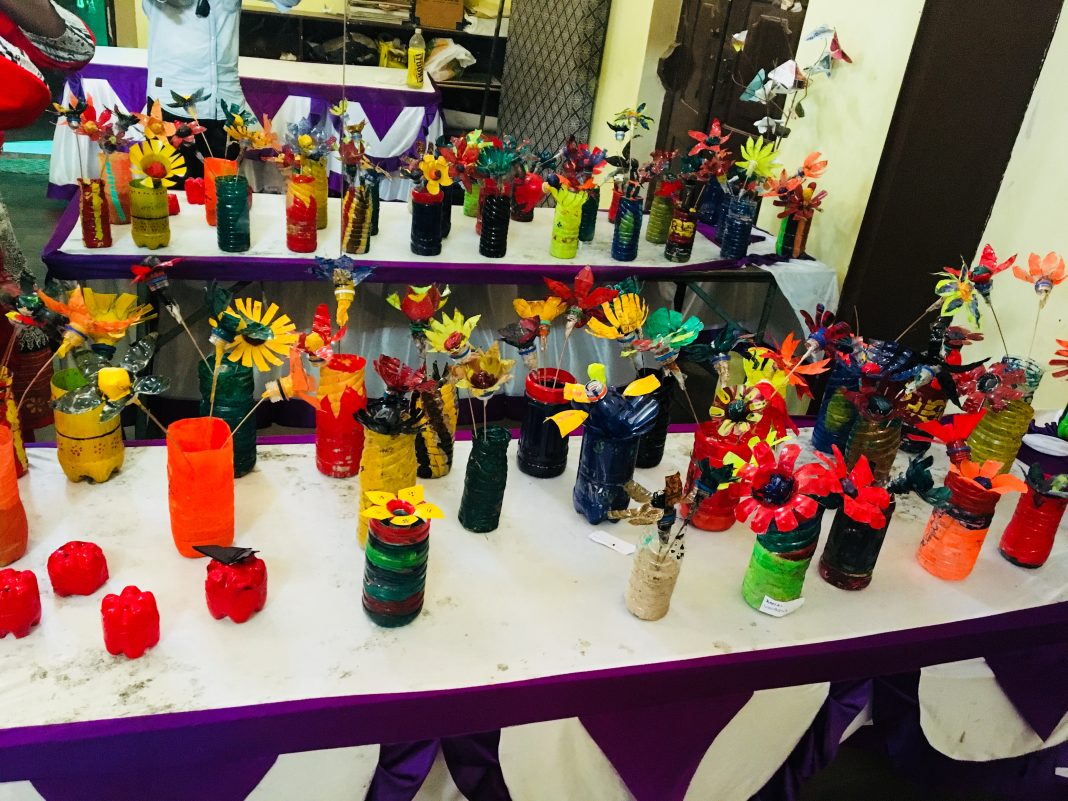The volunteers worked hard to develop the imagination and creativity among children. In the ‘Best Out of Waste’ workshop, the children created vases and flowers out of plastic bottles. They also made an ‘Apple Tree’ out of 2 plastic bottles only with the neck of the bottle for flowers, the bottom for the apples and the middle part for leaves. They also made ‘Glow in the Dark Lanterns’ from glass jars.