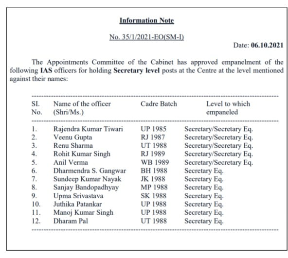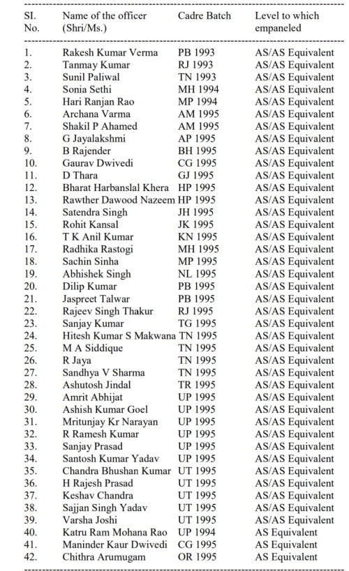 Industries Secretary Hemant Sharma, Revenue Secretary Bishnupada Sethi and Chief Electoral Officer Sushil Lohani did not figure among the 42 IAS officers whose names were approved by the Appointments Committee of the Cabinet for empanelment to hold Additional Secretary level posts, according to an information note.