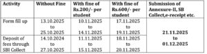 The ex-regular students can fill up forms without any penalties from October 13 to 25. The fees have to be deposited from October 14 and October 27. They are allowed to fill up the forms from November 10 to 14 with Rs 200 as fine to be deposited along with the fees between November 11 and November 15. An additional penalty of Rs 600 will be imposed to submit forms from November 17 to 19. The students will have to deposit the fine along with the fees between November 18 and November 20.