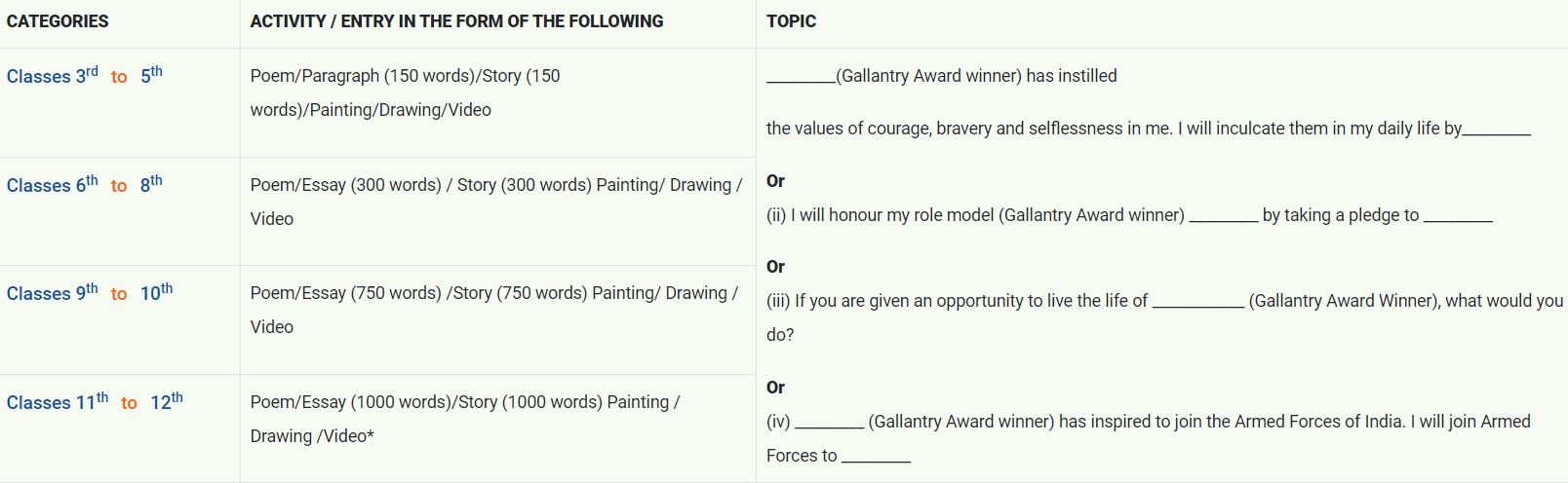 The selected students will get an e-Certificate of Participation and will be awarded Rs 10,000 cash prize by the Ministry of Defence. Each of the 25 winners will be invited to Republic Day Celebration in Delhi.