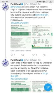 Puri: A “Clean Puri Initiative Logo and Tagline Competition” on the vision to make Puri the cleanest world-class heritage city has been launched.