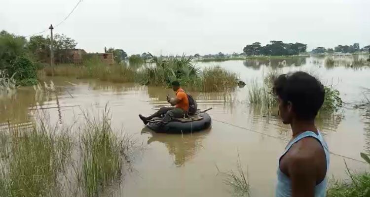 Notably, in the wake of heavy rain Nanakera has been waterlogged and flood water of Rajua river has entered the village. Knee deep water is flowing at several places and roads in the village.