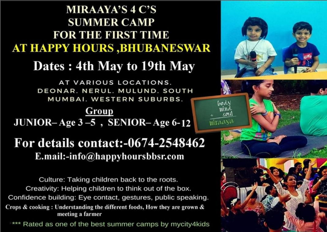 Miraaya’s 4 C’s – Simultaneously organized at different cities, this summer camp is for three-year-old tiny tots to 12-year-old budding teen. It aims at taking children back to the roots, helping them think out of the box and build their confidence. It starts on May 4 at Happy Hours.