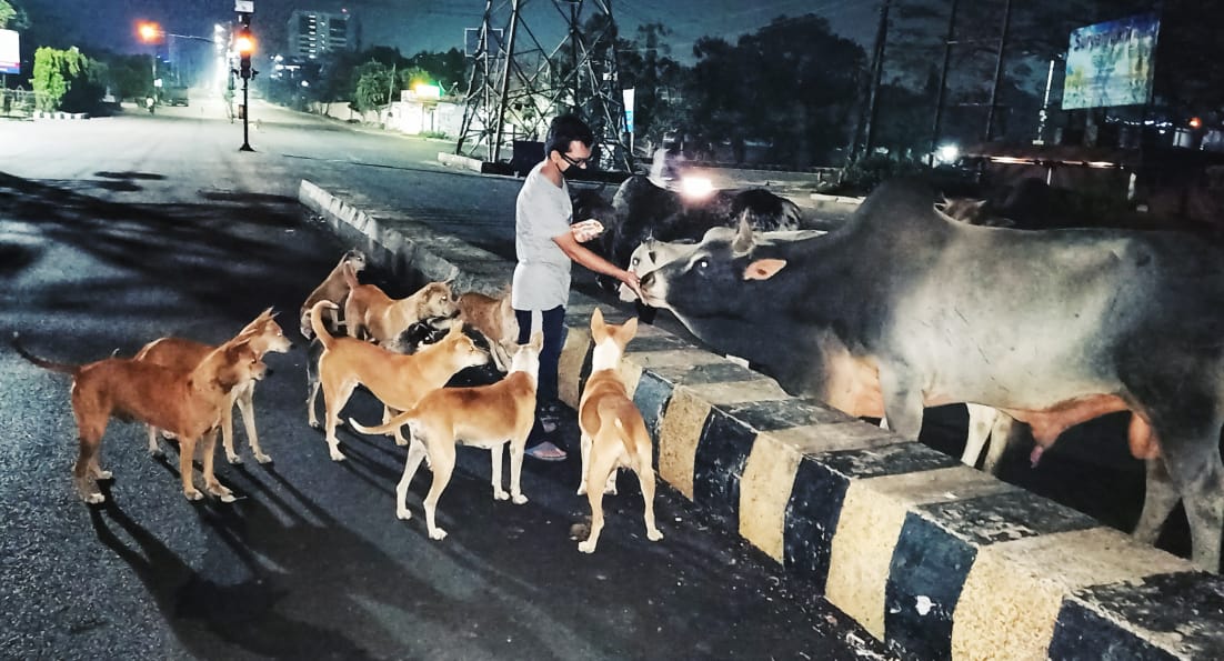 “We started feeding strays including cows, dogs, cats and monkeys from the day after the lockdown was announced. I observed that many people were coming forward to help the poor and needy but no one had spared a thought for the strays,” said Debasish.