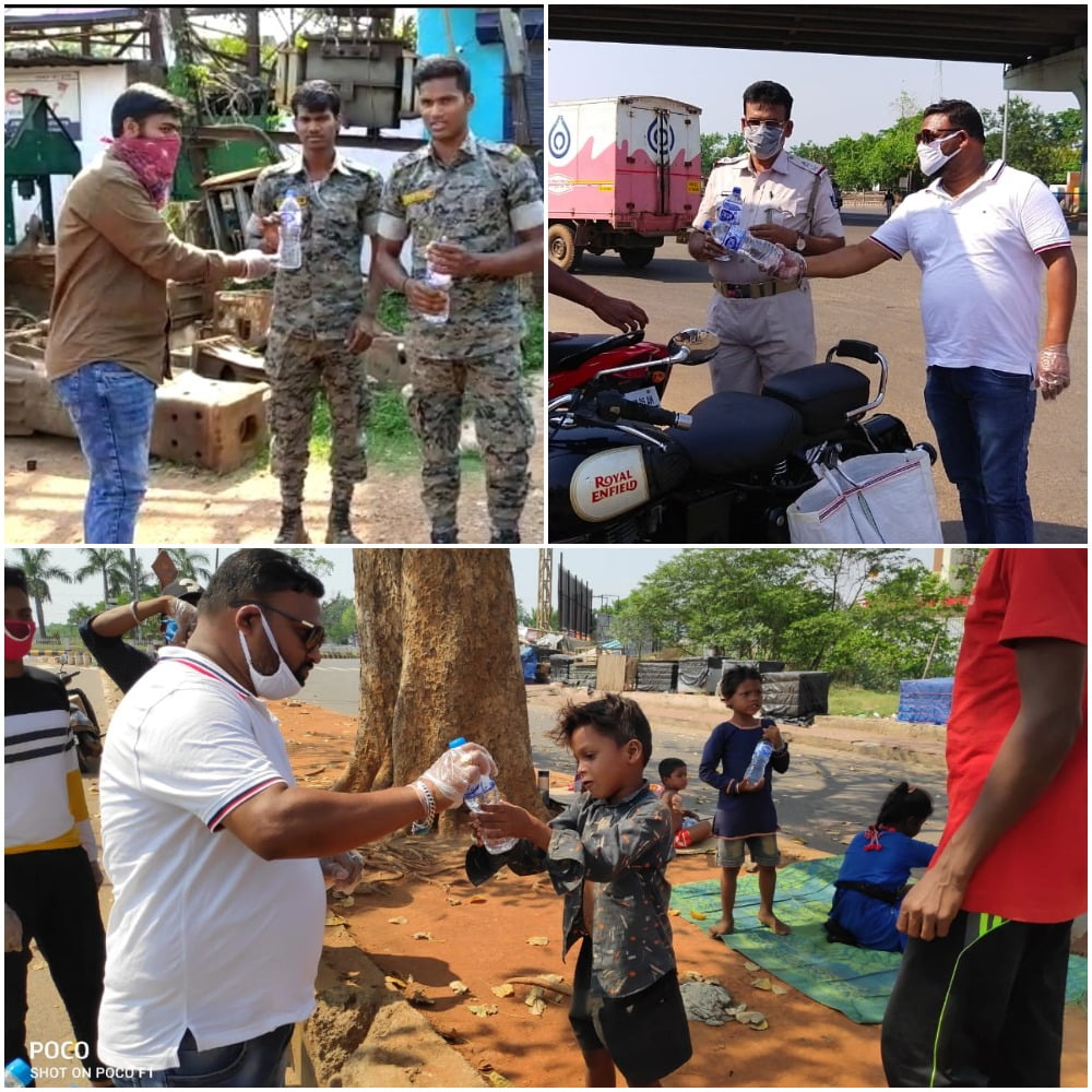 Debasish and his team members can also be seen distributing water bottles to the police and to pavement dwellers.