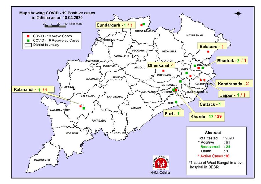 The virus has spread its tentacles to 10 districts of Odisha, which has so far reported 61 positive cases. They are Khurda, Cuttack, Bhardrak, Sundargarh, Kendrapada, Puri, Jajpur, Kalahandi, Balasore and Dhenkanal.