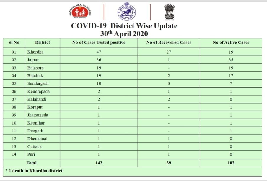 As far as districtwise figures are concerned, Khurda leads with 27 recoveries out of the maximum 47 positive cases. Sundergarh comes after that, with three recoveries – including the two persons in Rourkela on Thursday – out of 10 infected patients.