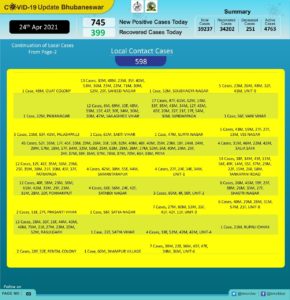 Of the local contacts, highest 45 cases were from Patia, followed by 33 from Old Town, 31 from Khandagiri and 30 from Nayapalli.